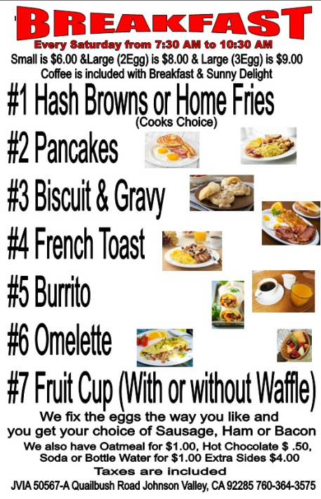 Come join us for Breakfast, we have a great menu with lots of choices.